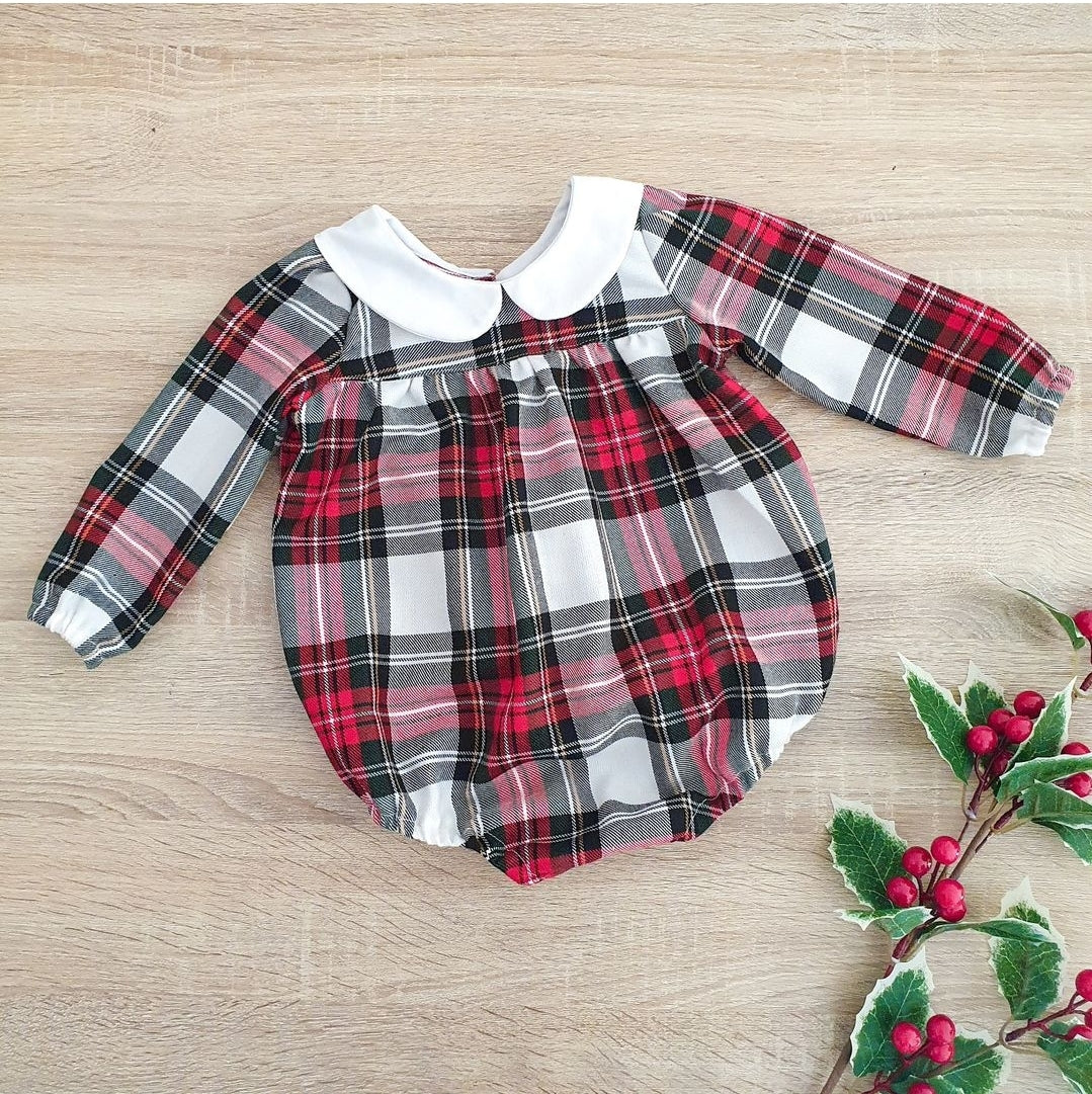 Fofo inteiro em tartan natalício vermelho e branco com golinha em branco.